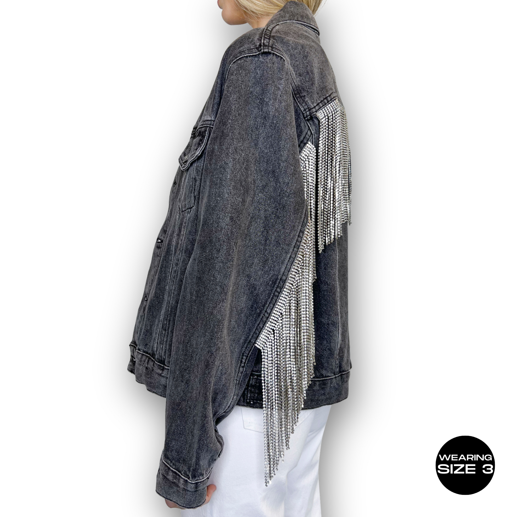 Stand out from the crowd in THE ASPEN, a must-have from our Nashville Collection jackets. This washed black denim jacket features our iconic silver rhinestone fringe, adding a touch of sass to any outfit. Hand-crafted details and our signature antiqued silver logo buttons make each jacket unique.