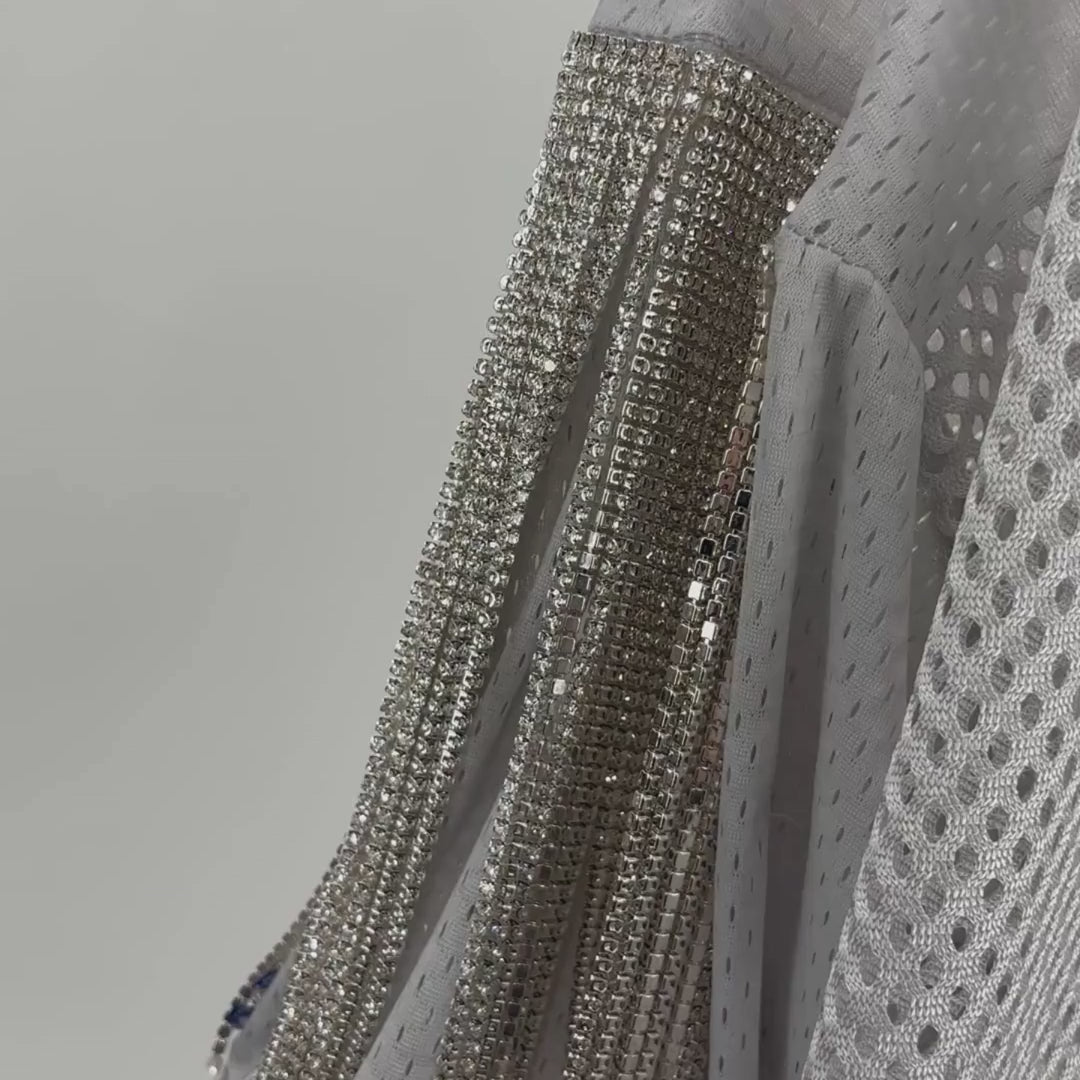 OUR PREMIUM SNAGLESS RHINESTONE FRINGE ADDS OUR SHIMMER TO SENSITIVE FABRICS WITH NO CHANCE OF DAMAGE. CRAFTED WITH SMOOTH EDGES AND A HIGH-QUALITY FINISH, IT'S SAFE FOR SILKS, SWEATERS, NYLON, AND MESH — NO SHARP EDGES, JUST SEAMLESS SPARKLE.