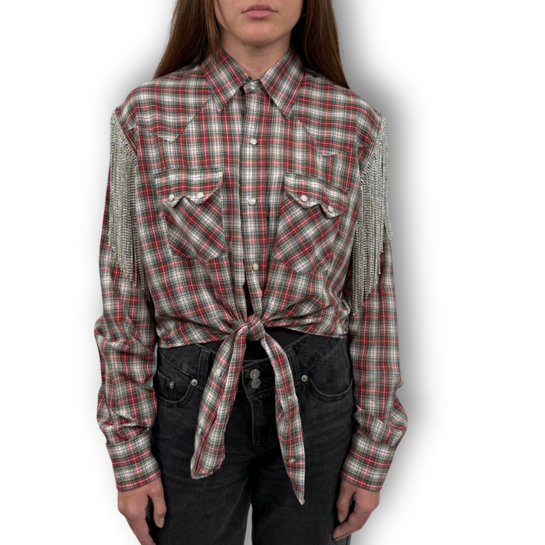 OUR VINTAGE TIE TOPS ARE HANDMADE IN LOS ANGELES USING PREMIUM RHINESTONE FRINGE SHOULDER PIECES.